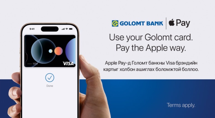 (몽골=하이몽골리아뉴스) 골롬트 은행이 몽골 시중은행 가운데 처음으로 Apple Pay에 Visa 브랜드 카드 연동 기능을 도입했다고 밝혔다.